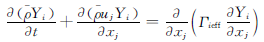 (n為組分個數,因本文中只有蒸汽和液滴,故取n=2);Γi為分子擴散系數;μt為湍流渦粘系數;sct為紊流施密特數。