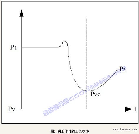 圖3用來表示流體介質流經閥體內部的壓力變化:P1閥的入口壓力;P2閥的出口壓力;Pv閥入口溫度下的液體飽和蒸汽壓;Pvc流體縮流斷面的壓力。