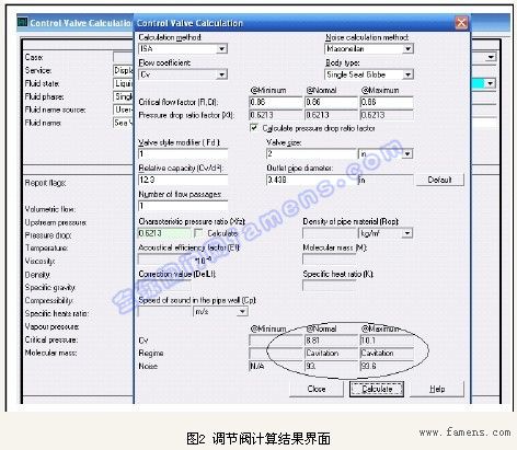 綜合CV值,選擇調節閥體尺寸為2〃,經fisher廠家計算在正常工作狀態下開度在55%-61%之間,滿足工藝和設計需要。