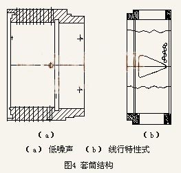 工業(yè)生產控制系統(tǒng)的多樣性決定了調節(jié)閥必須具備靈活的可調結構,軸流型調節(jié)閥要適應現(xiàn)代工業(yè)的發(fā)展也必須具備此特點。套筒是為適應高壓差,大口徑的管道需要而設計的一種流量節(jié)流零件。套筒閥因其獨特的導向穩(wěn)定性和易于實現(xiàn)高精度調節(jié)被廣泛使用,套筒閥的發(fā)明使原有閥門的流通能力提高了20%。套筒是為解決單座閥流通能力過低,不平衡力大而設計的一種結構,使用較廣泛。軸流型調節(jié)閥吸取了它的優(yōu)點,延用了此結構。套筒(圖4)分為低噪聲式、線性特性式、等百分比式和低壓降比式等。