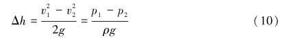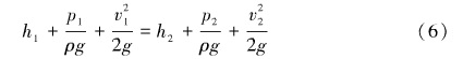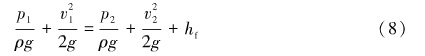 因為管道是水平安裝的,因此位置壓頭都相等,即h1 =h2,將公式化簡得式(8)