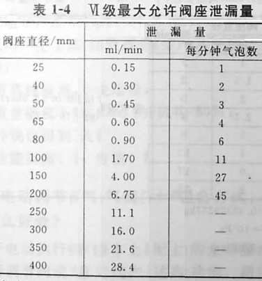 隨閥座直徑變化,最大允許泄漏量(ml/min或每分種氣泡數(shù))列于表1-4.